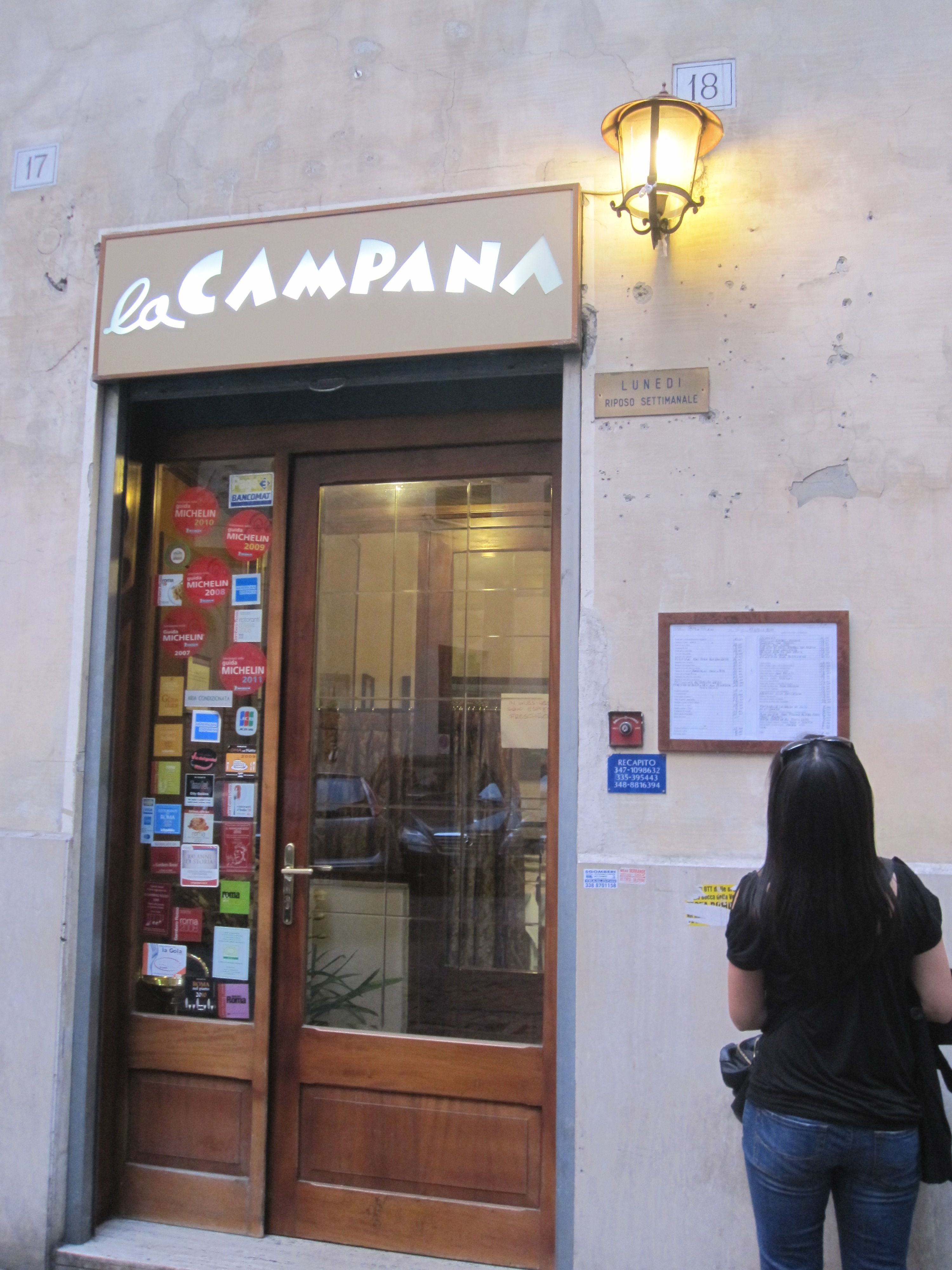 Hopefully you were able to get a table / reservation at La Campana (link here). I had one of the most memorable dining experiences at this place because of the food and service. The service was great and staffed with people who just love food. The best part, it was inexpensive (got tripe, pasta, tiramisu, and wine for two – 20€ per person). I was there back in 2011 so hopefully it is still the same!